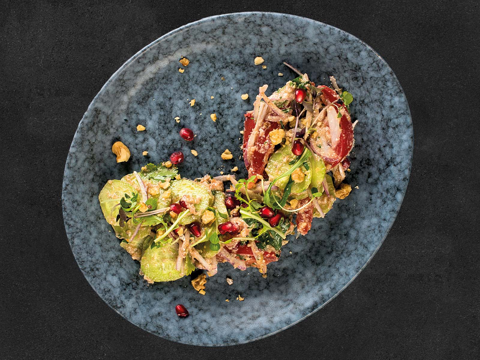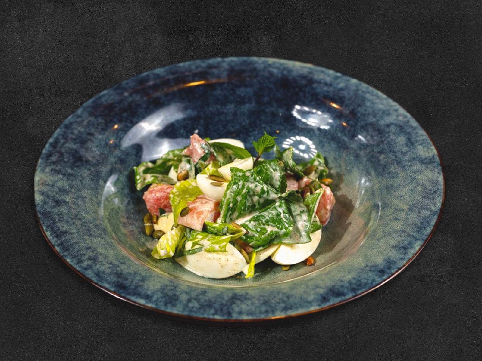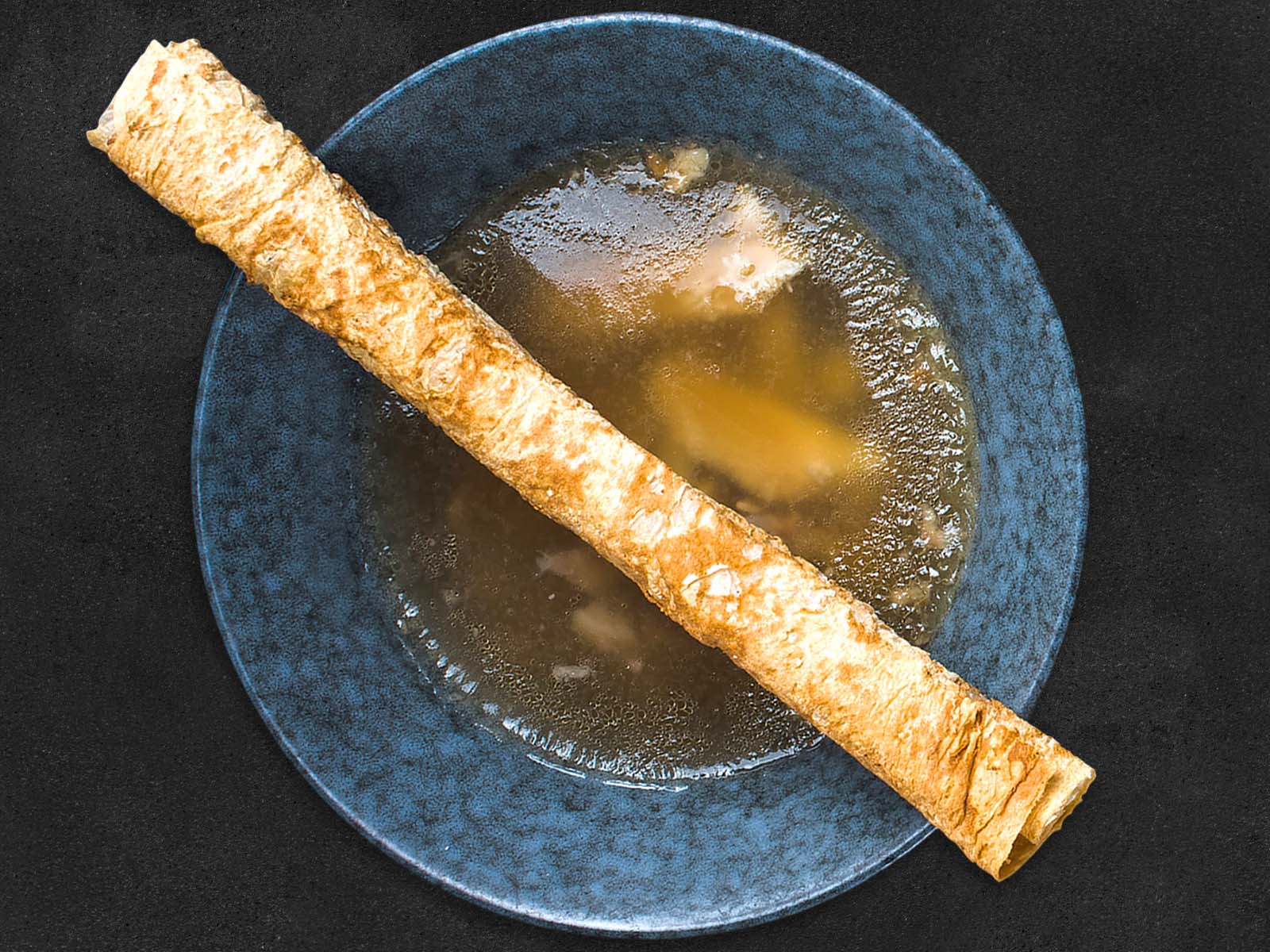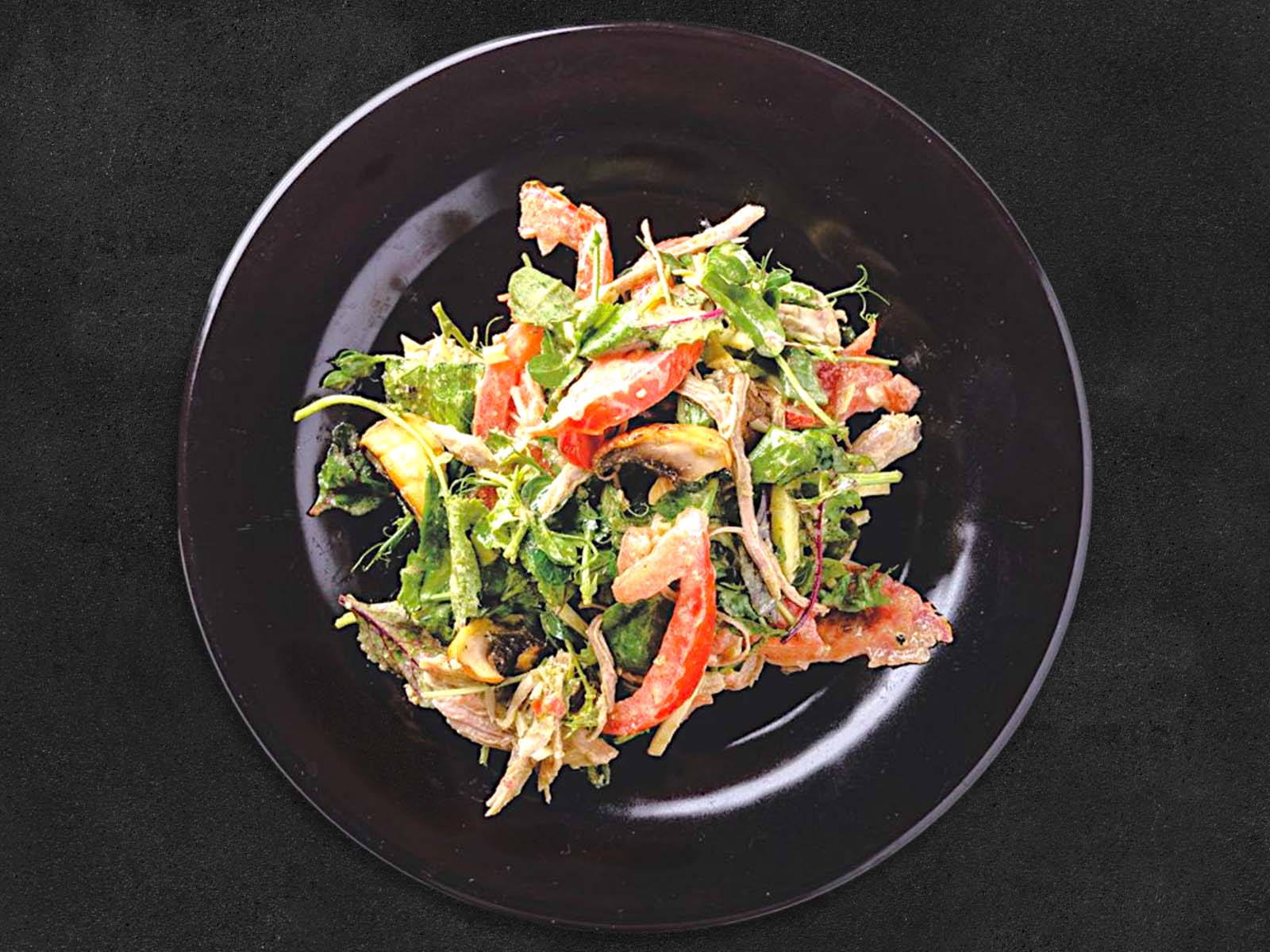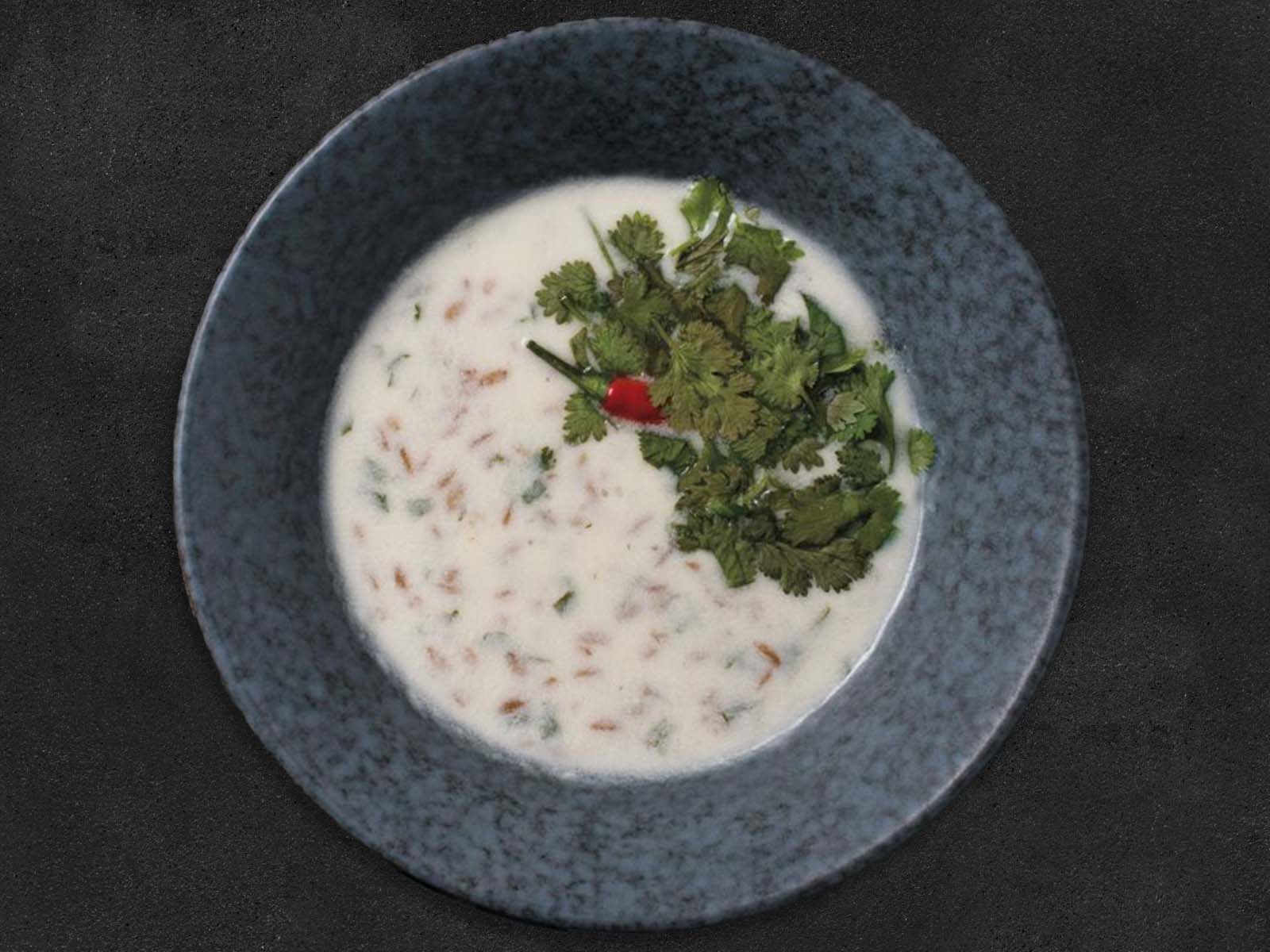 Традиционный суп со специями, телятиной и рисом, а также кинзой, красным перцем, приправой уцко-сунели, хмели-сунели, чесноком, кориандром, базиликом и томатами. По желанию гостя можем приготовить с каре ягненка. Остро!