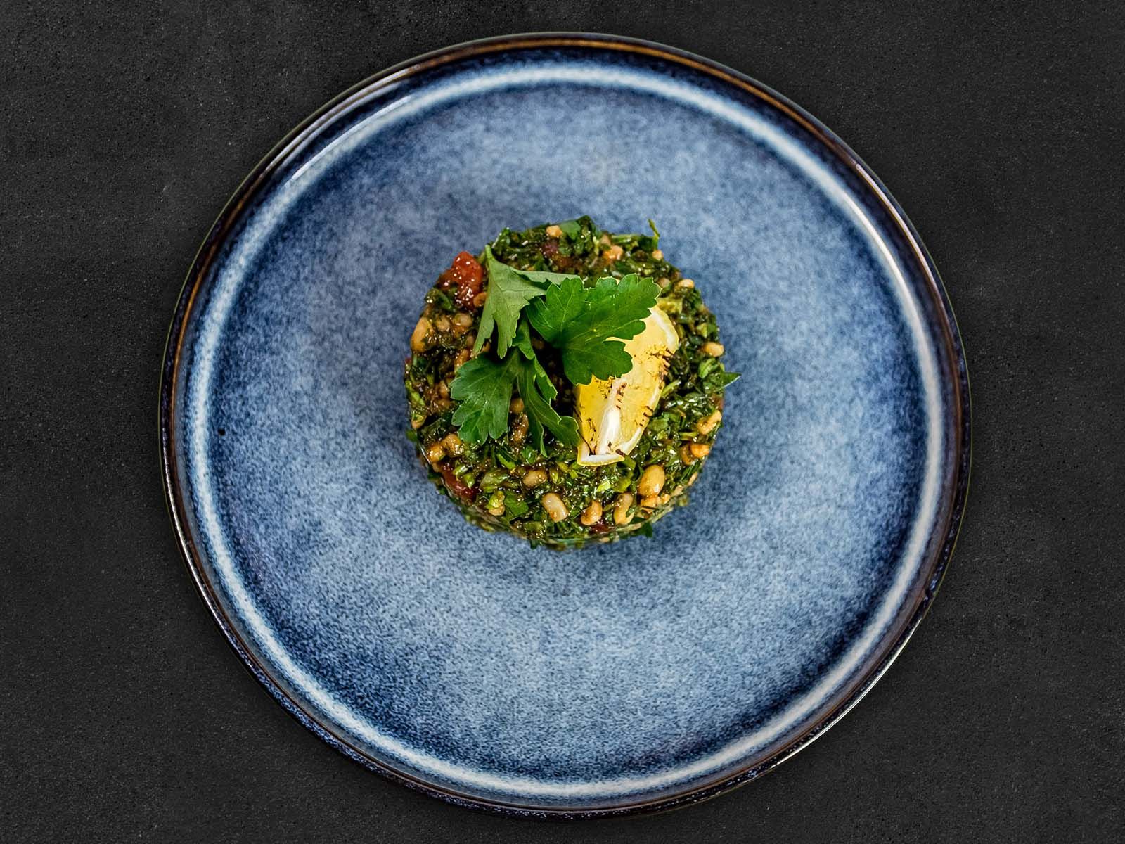 Постное армянское блюдо с сочной начинкой из шести видов зелени: ботва свеклы, щавель, шпинат, лук зеленый, укроп, кинза,лук репчатый(жареный).